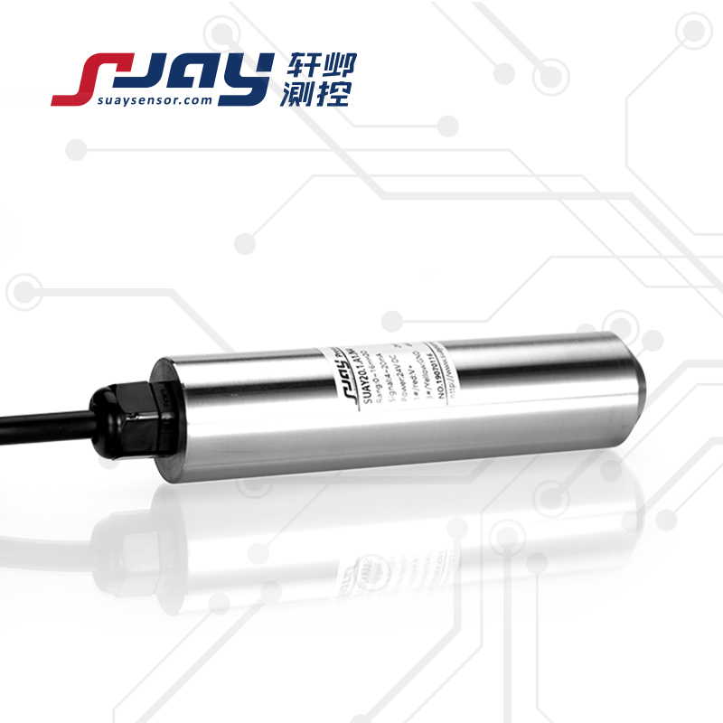 SUAY20液位傳感器 液位變送器 數字液位傳感器 水位傳感器采用MEMS技術為核心的高靈敏度硅壓阻感壓芯片,是基于流體靜力學原理,通過對液體壓強的測量轉換為液位高度。量程0-0.1m...1m...200m可以按用戶要求設定量程,投入式測量,也可安裝式測量。精度:0.5%,0.25%,0.1%可選。適用于水箱水位測量,水池水位監測,河道、水庫、地下水位監測等領域。